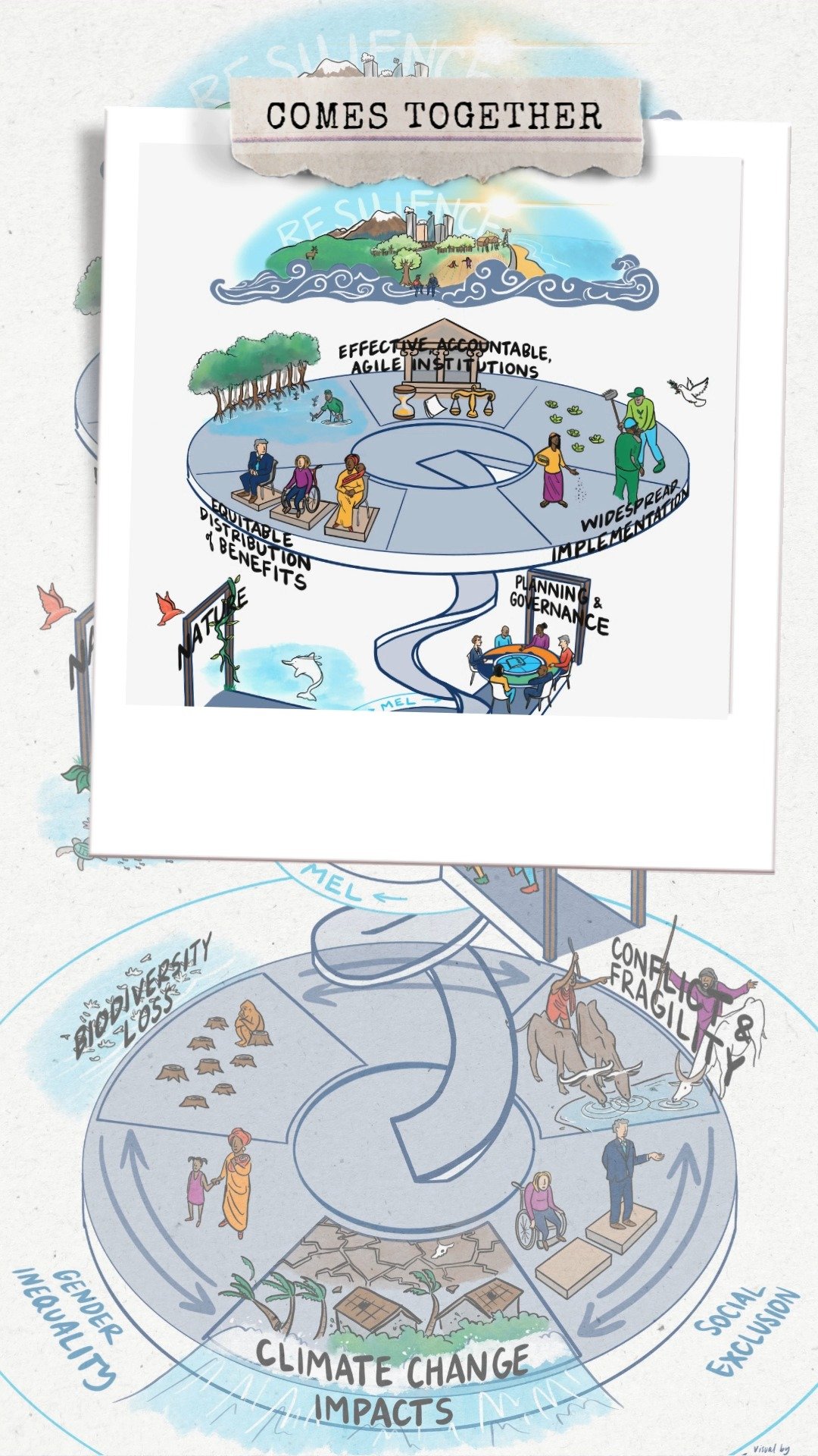 All my services are bespoke, but generally fall into the categories below. I specialise in visualising complex content in climate science, policy and negotiations, peace & reconciliation and leadership development, and I prioritise work with organisations dedicated to addressing climate change. I work for all sectors, from intergovernmental and public, to corporate, academic and community organisations. Contact me to start the conversation about how visual practice might support your project.